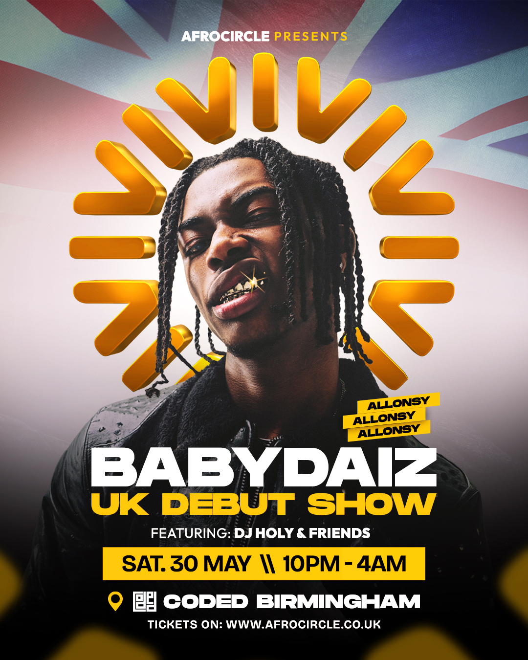 Tickets are available now. Given the social media buzz surrounding both BabyDaiz and the “Allonzy” phenomenon, organisers are confident this event will sell out well in advance.